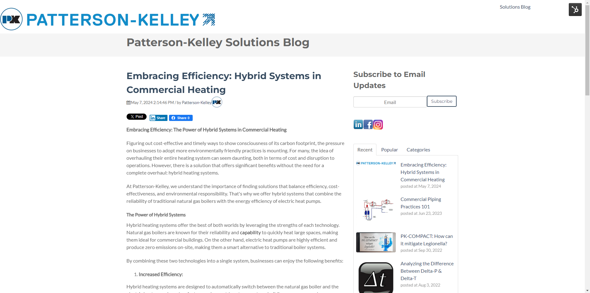 Download our presentation on the hybrid systems by clicking below. The presentation covers how and why a hybrid system being implemented into current building applications or new, can be beneficial. Perfect for a visual representation of the advantages of choosing a hybrid system by Patterson-Kelley.